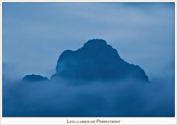 Fosqueja a Perputxent, i enlairat sobre la boirina, el gegant Benicadell senyoreja el paisatge i s’acomiada del dia… Títol / Lloc Blau (II) / Benicadell